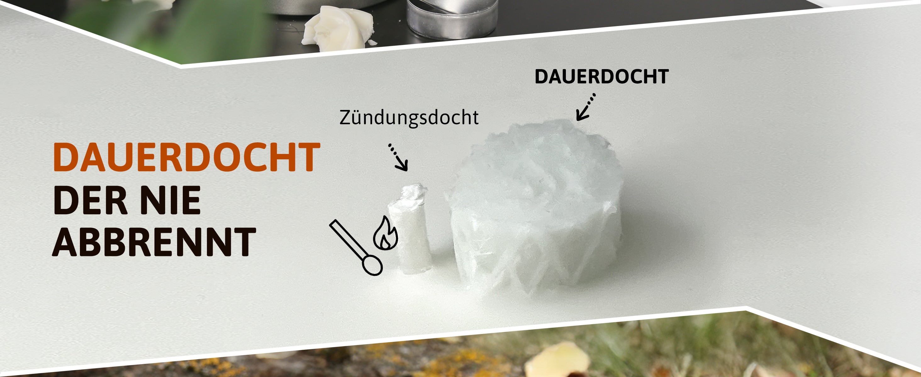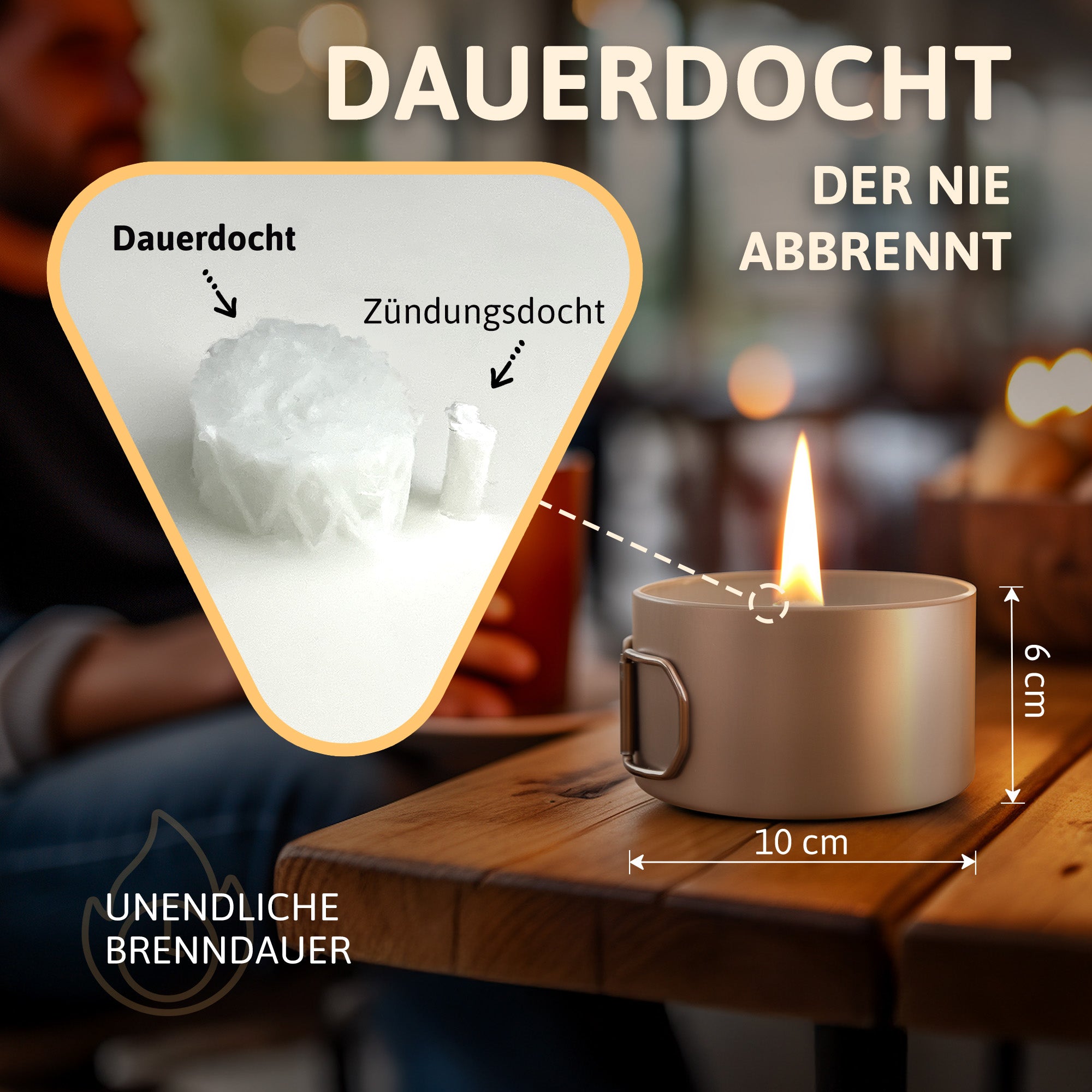 🔥 DAUERDOCHT - Unser spezieller Glasfaserdocht brennt nicht ab, sondern garantiert eine gleichmäßige und windbeständige Verbrennung des Kerzenwachs.