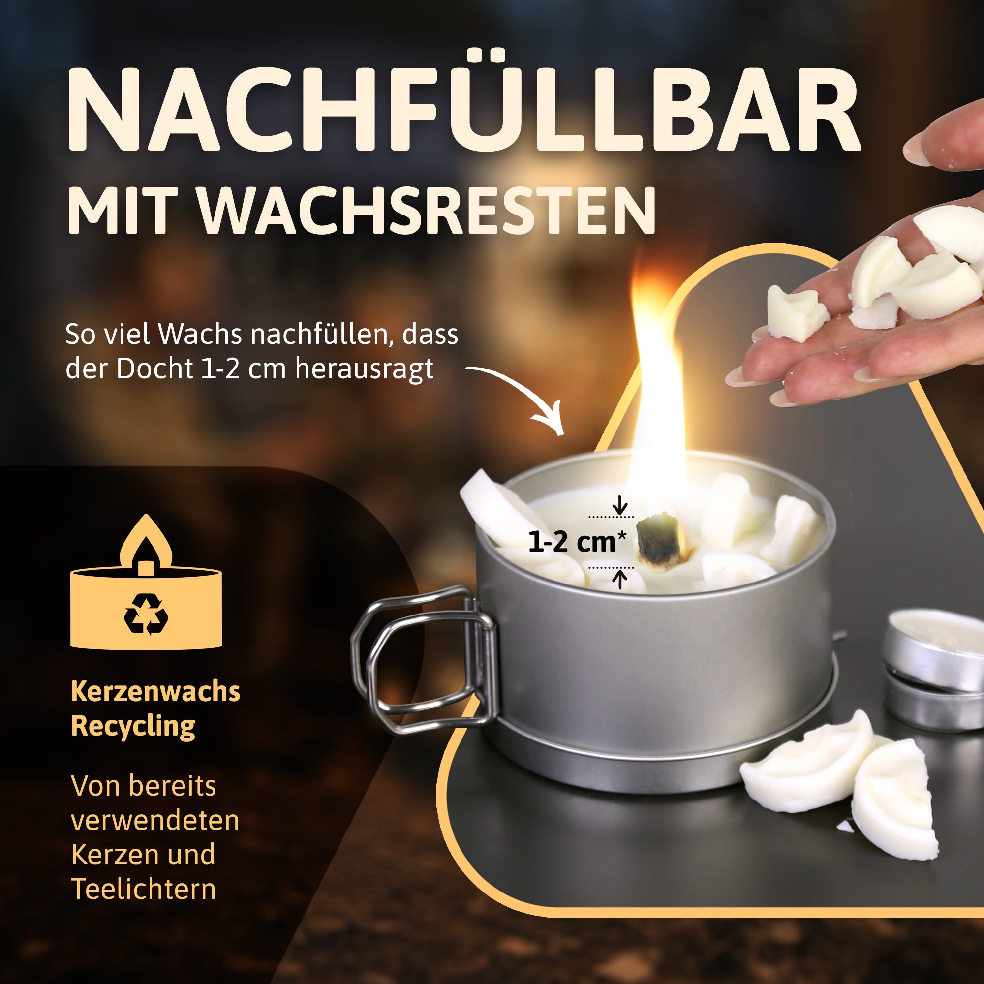 🔥EWIGE FLAMME - Einfach nachfüllbar mit alten Wachsresten wie Teelichtern oder Adventskerzen. Befülle die Kerze immer wieder und genieße ewiges Licht.